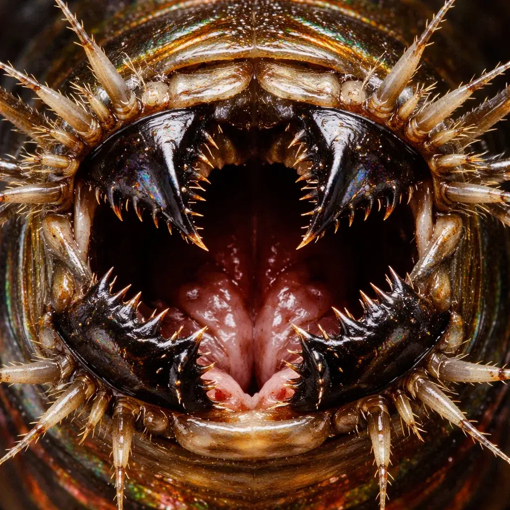 - Maxillae: The upper, serrated plates that act like a gin trap, interlocking to ensure the prey cannot escape.