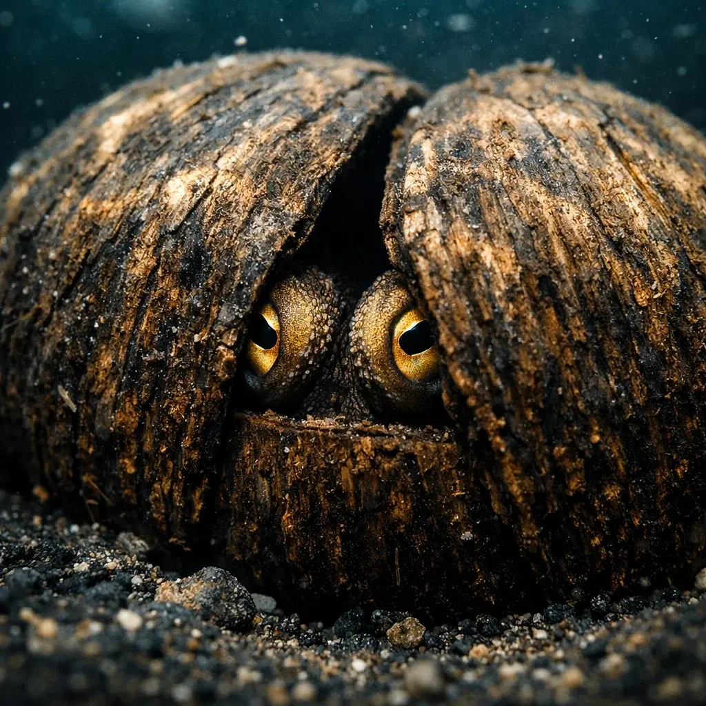 These octopuses inhabit sandy and muddy seafloors where natural hiding spots are scarce. To compensate for the lack of crevices, they have adapted to use human-discarded coconut shells—which are plentiful in coastal regions of Southeast Asia—as a form of mobile home. When they find a shell, they will clean it out, tuck it under their bodies, and carry it across the seafloor. If they encounter a second shell half, they will stack the two together, essentially creating a “clamshell” of protection that they can pull shut when threatened.