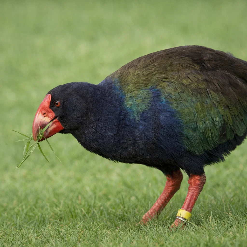 - Size and Stature: The Takahe is significantly larger and “chunkier,” with a much heavier beak and shorter, thicker legs. The Pūkeko has long, thin toes and a more slender profile.