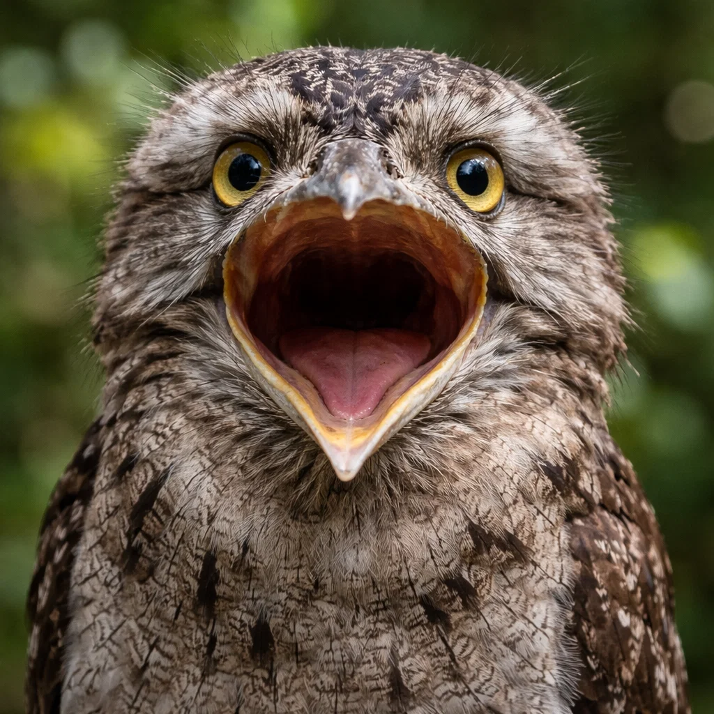 To humans, frogmouths are generally incredibly docile. Their primary defense is to hide, not to fight. However, if they feel cornered or if their nest is directly threatened, they can put on a frightening display. They will open their mouths wide, revealing a bright yellow interior, and hiss loudly while snapping their beaks. This is purely a bluff intended to scare off predators like cats or possums. They are not aggressive by nature and will always choose flight (or stillness) over a physical confrontation.