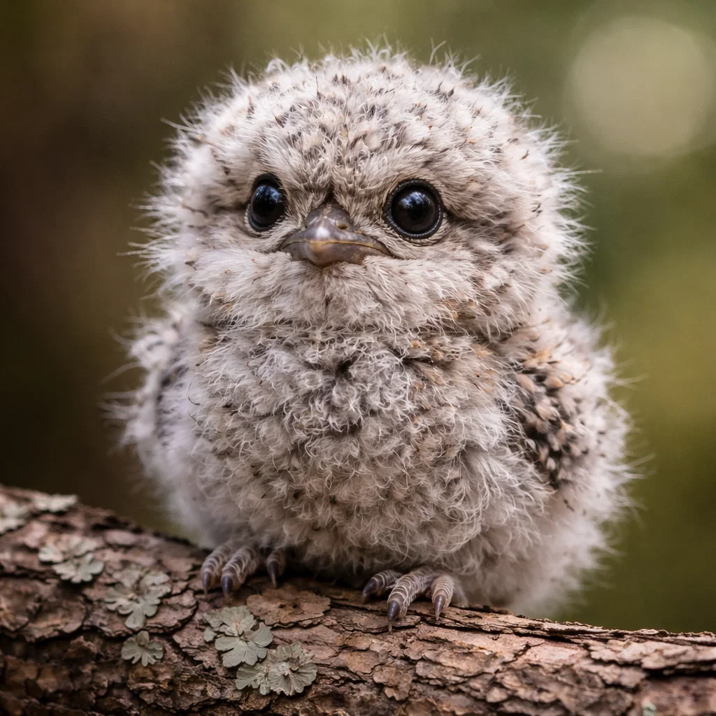 When a Tawny frogmouth baby hatches, it looks very different from its parents. The chicks are covered in a thick, white downy fluff that makes them resemble small cotton balls.15 This white plumage eventually gives way to the streaked grey feathers as they mature.