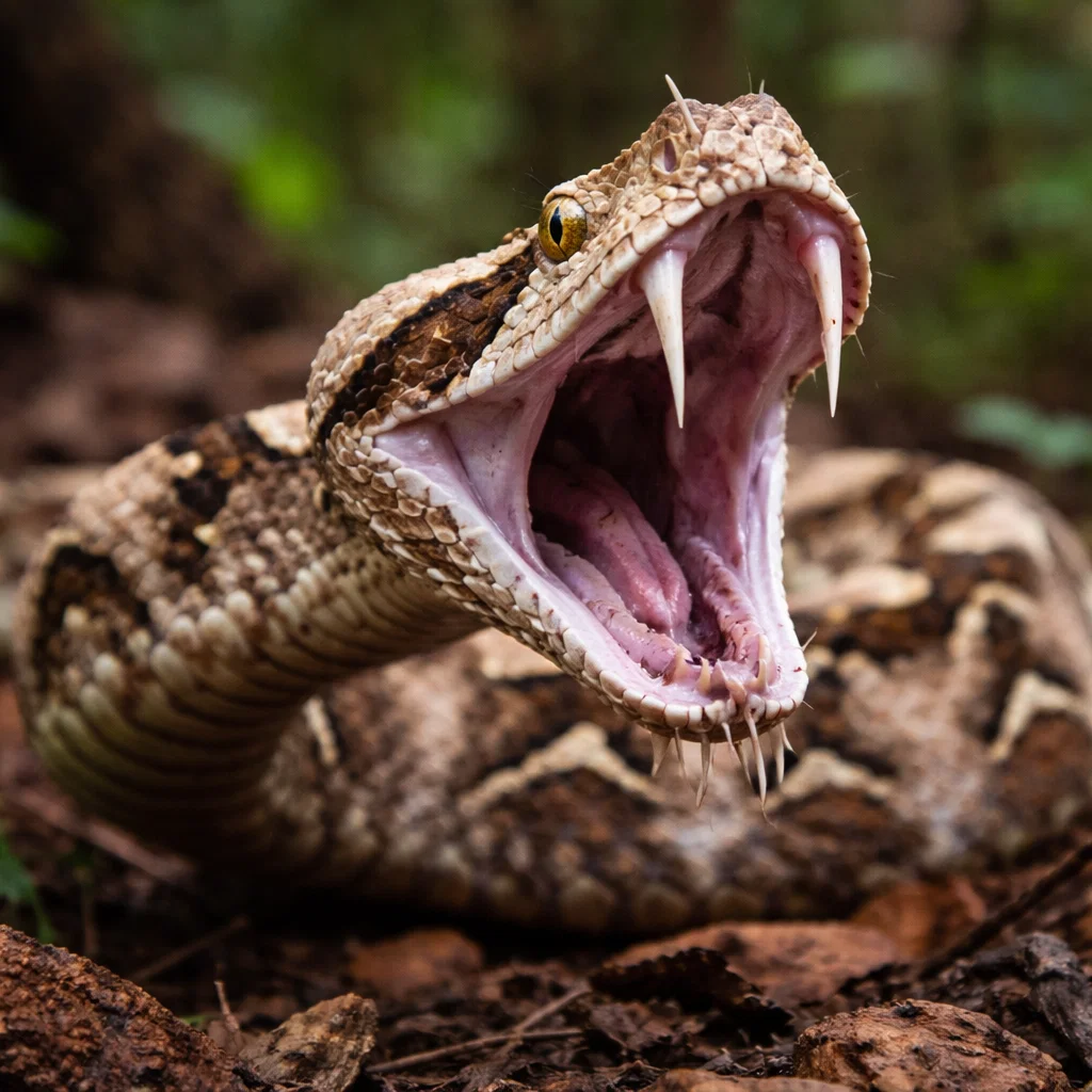 The Gaboon Viper (Bitis gabonica) is a testament to the power of specialized evolution. From its record-breaking Gaboon Viper fangs to its complex Gaboon Viper venom, every part of this snake is designed for a singular purpose: to be the ultimate ambush predator. It is a creature of contrast—vibrantly colored yet invisible, lethally powerful yet surprisingly calm.
